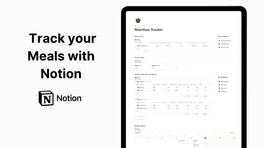 With the Nutrition Tracker template, you can easily monitor and track your meals and calorie intake to support your dietary goals and overall health.